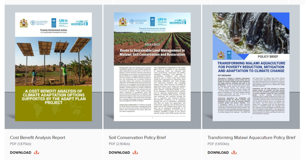 We have also delivered project reports, toolkits and policy briefs for the UN Poverty-Environment Action (PEA). The published documents are available here